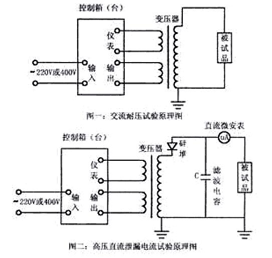 5、試驗中,如果試品短路或故障擊穿,控制箱中的過流繼電器工作,此時,將調(diào)壓器回至零位,并切斷電源后,方可將試品取出。